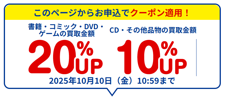 【期間限定】ブックオフ買取価格20%アップクーポン